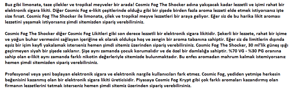 Cosmic Fog The Shocker (Çilek - Limonata - Tropikal Meyve) Özellikleri:
